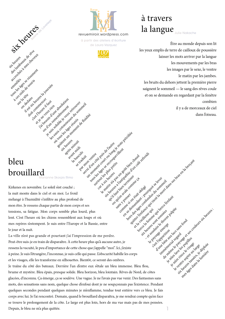 À partir d’une consigne ou d’une invitation à écrire, la sélection de cette édition spéciale se plie pour être envoyée à qui vous le souhaitez. N’hésitez pas à l’imprimer et la partager pour continuer l’élan généreux que représente les ateliers de Laura Vazquez.