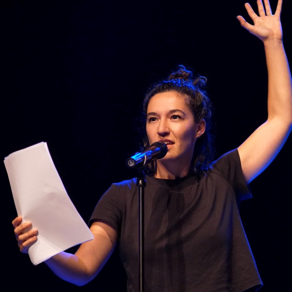 Elle explore autant dans son écriture le champ de la géopoésie et la mémoire paysanne qu’une posture queer et punk affranchie de la norme. Et ce, toujours avec un lien très physique aux syntagmes : son “écrire” explore le “dire”. Elle pratique ainsi une poésie scénique. Elle s’est formée et continue de se former en théâtre physique et à diverses techniques corporelles et de geste. Elle propose des performances poétiques un peu partout en France qui se trouvent quelque part entre ses racines rurales et son envie irrépressible de paillettes, sa sensibilité lyrique et ses manies de petit clown. Elle-même revendique « mouvementer les mots »..