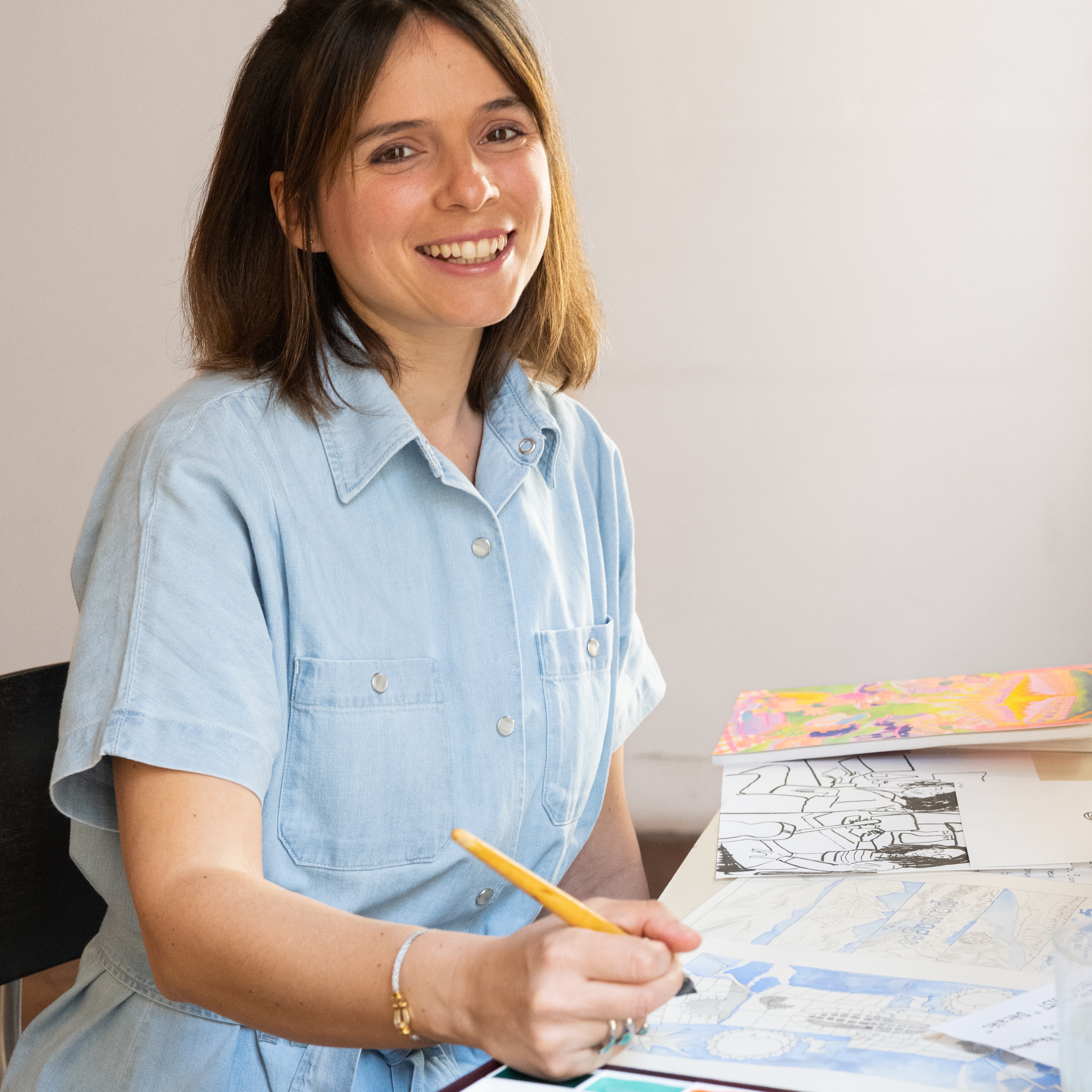 Titulaire d’un Diplôme National d’Arts Plastiques mention illustration de la Haute École des Arts du Rhin depuis 2016, je privilégie l’aquarelle et le papier ou l’aquarelle numérique sur le logiciel procreate, dans un style poétique, malicieux et proche de la bande-dessinée.